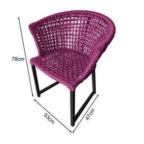 Kit 4 Cadeiras Salinas Corda Náutica Base Em Alumínio Preto/rosa - Cor: Rosa