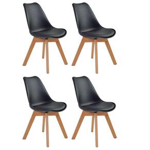 Kit 4 Cadeiras Siena C- Estrutura Em Polipropileno E Base Madeira Fratini Preto