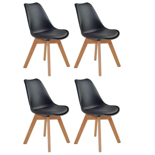 Kit 4 Cadeiras Siena Com Estrutura Em Polipropileno E Base Madeira Fratini Preto