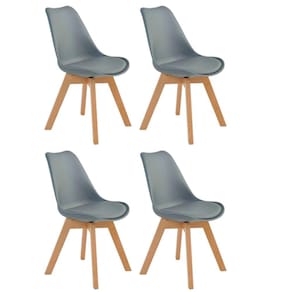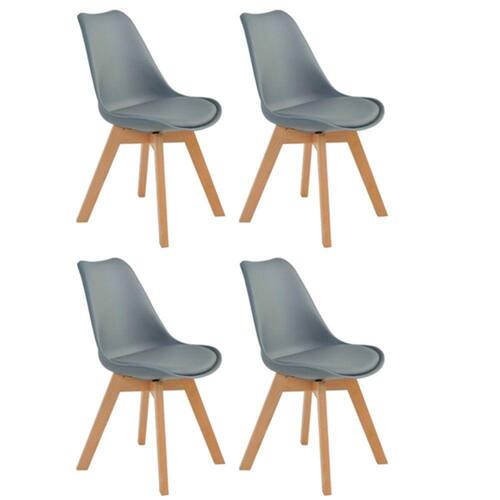 Kit 4 Cadeiras Siena Com Estrutura em Polipropileno e Base Madeira Fratini - Cinza
