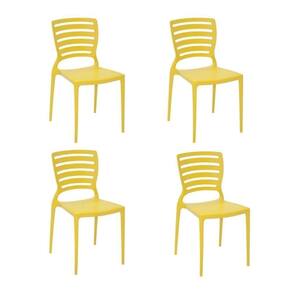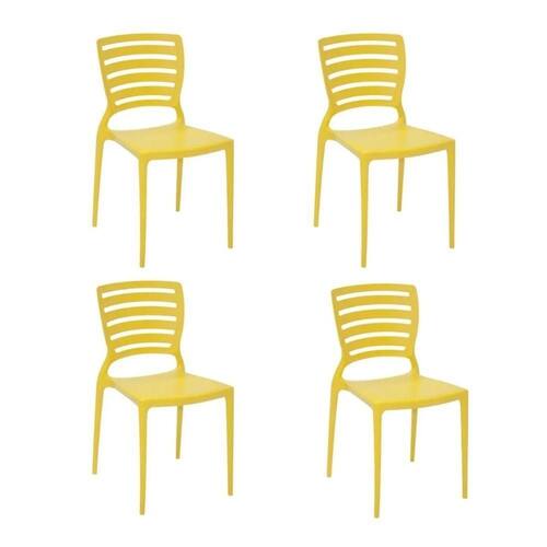 A Cadeira Sofia Amarela Tramontina é feita de polipropileno e fibra de vidro.