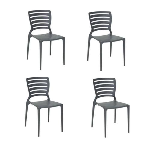 Kit 4 Cadeiras Sofia Grafite Tramontina Encosto Vazado Horizontal 92237/007 - Cinza