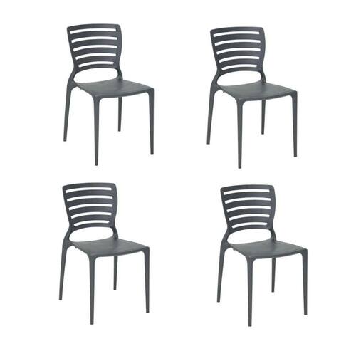 Kit 4 Cadeiras Sofia Grafite Tramontina Encosto Vazado Horizontal 92237/007 - Cinza