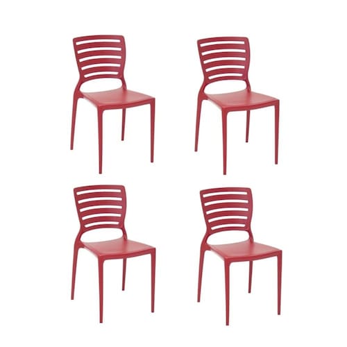Kit 4 Cadeiras Sofia Vermelha Tramontina Encosto Vazado Horizontal 92237/040 - Vermelho