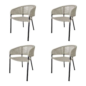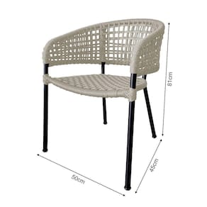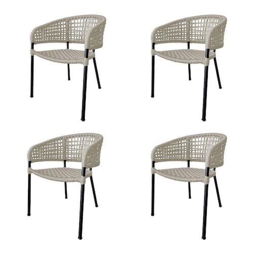 Kit 4 Cadeiras Sol Corda Náutica Base Em Alumínio Preto/areia - Cor: Bege