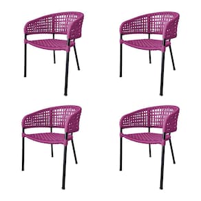 Kit 4 Cadeiras Sol Corda Náutica Base Em Alumínio Preto/rosa - Cor: Rosa