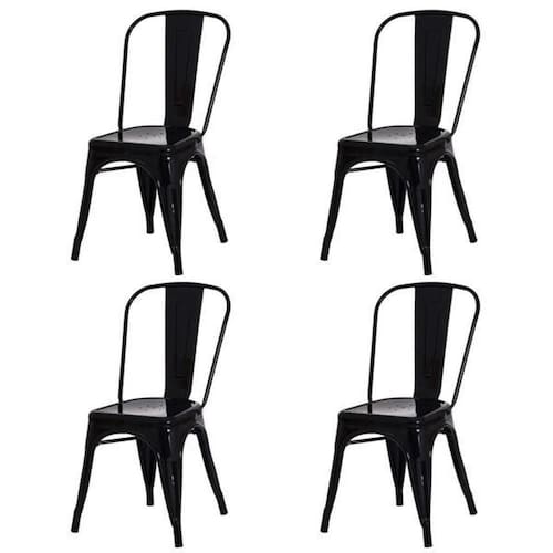 Kit 4 Cadeiras Tolix Iron Industrial Preta Kit 4 Cadeira Iron Tolix Industrial Preta A Cadeira Tolix Iron Industrial, desde 1927 fazendo sucesso até hoje com seu estilo vintage e retrô, vai dar um up na decoração do seu ambiente, perfeita para qualquer espaço, graças a seu estilo arrojado. Apesar do aspecto antigo, a cadeira Tolix tem agregado muito bem aos diversos tipos de decoração, ela dá um toque charmoso e predominante no ambiente. Seu encosto é largo, o assento é grande e ainda pode levar uma almofada para ficar mais confortável. Características Técnicas da Cadeira: Tolix Iron Industrial: Altura: 86 cm Largura: 45 cm Profundidade: 36 cm Altura Do Chão Até o Assento: 45cm Peso suportado: 120 kg Perguntas Frequentes: 1- Tem a pronta ? R: Sim, enquanto o anúncio estiver ativo com as cores disponíveis, teremos a pronta . 2- Qual o prazo de despacho? R: Nós da Cadeiras Inc, priorizamos em despachar em até 24 horas úteis após a aprovação do pagamento.3- Elas são empilháveis? R: Sim, podendo empilhar até 6 cadeiras. Obrigado :) Cadeiras Inc.
