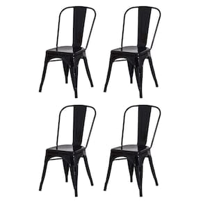 Kit 4 Cadeiras Tolix Iron Design Preta Aço Industrial Sala Cozinha Jantar Bar