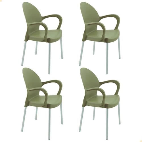 CONJUNTO COMPOSTO POR: 4 UN - CADEIRA TRAMONTINA GRACE COM BRAÇOS EM POLIPROPILENO VERDE OLIVA 92068927 Marca: Tramontina Modelo: Grace Verde Oliva 92068/927