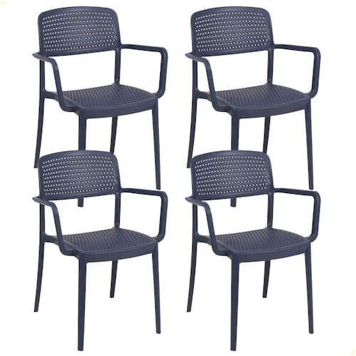 Kit 4 Cadeiras Tramontina Serena em Polipropileno Azul Navy com Braços 92097030 - Azul Marinho