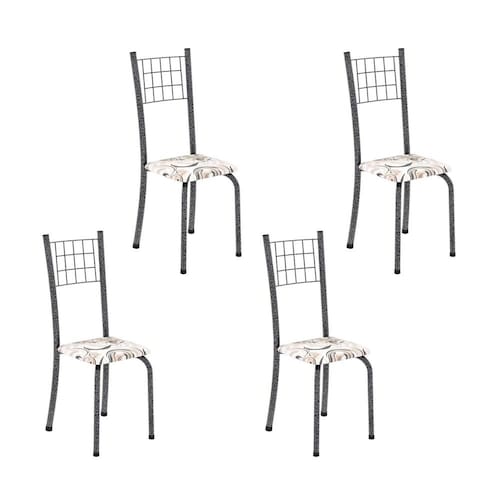 Kit 4 Cadeiras Tubular 95x37x40 Cm Dany Arabesco/ Mart Prata