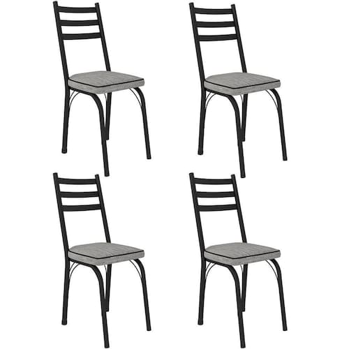 Kit 4 Cadeiras Tubular Nara 141 de Aço Cromo - Preto