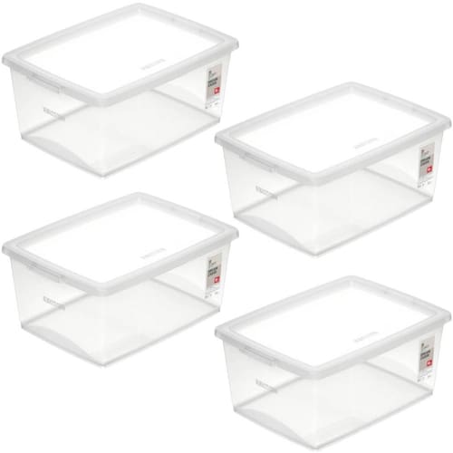 Kit 4 Caixas Organizadoras 15L de Plástico com Tampa My Closet Ordene Multiuso Retangulares Transparente