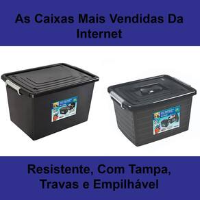 30 Litros Caixa Organizadora Container Preta com Trava Prata 25864PM Arqplast