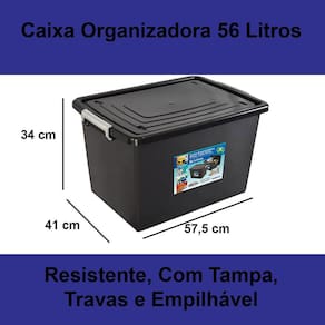56 Litros com Tampa e Trava Preta 25793PM Arqplast
