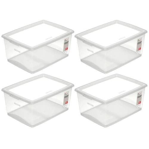 Garantia: 90 dias / Peso total: 3,488kg / Cor predominante: transparente / Referência: 7798139714198; Dimensões de cada caixa: 52,5cm (C) x 37,5cm (L) x 23,5cm (A); Capacidade: 30 litros cada; Conteúdo: 4 caixas organizadoras com tampa; Material: polipropileno; Obs.: o produto possui corpo e tampa transparentes, imagens com outras cores são somente ilustrativas.