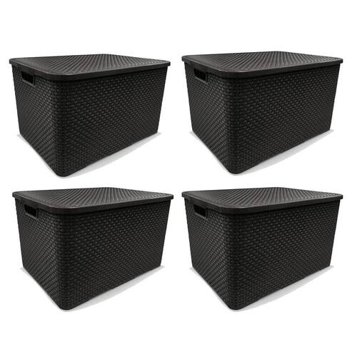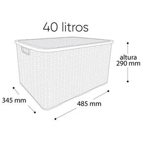 Kit 4 Caixas Organizadoras Rattan PRETA 40 Litros Arqplast Kit 4 Caixas Organizadoras Rattan PRETA 40 Litros Arqplast Caixa organizadora em plástico com tampa, que facilita a organização De guarda roupas e armários, por ser uma peça charmosa expor em Ambientes abertos dá um toque especial a decoração. Combina com vários ambientes, como cozinha, sala, banheiro e quarto. Material - Polipropileno DescriçãoDimensões:480 X 340 X 890mm (Corpo) 505 X 370 X 165mm (Tampa) (comprimento x largura x altura) medida do produtoDimensões: 485 X 345 X 290mm (comprimento x largura x altura)