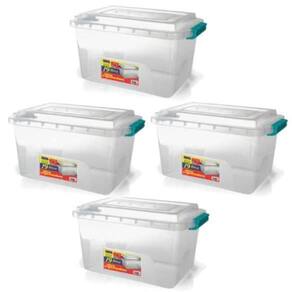 Kit 4 Caixas Organizadoras Transparente Tampa e Travas 19 L 2173 Ercaplast Caixa Organizadora Alta 19 Litros com Travas Resistente, prática e versátil que atende as mais diversas finalidades, você pode organizar alimentos, brinquedos, documentos, material escolar, ferramentas. Com trava de fechamento que garante mais segurança para seu material armazenado. Transparência que permite a visualização do conteúdo. Capacidade de Peso: 19 Litros Dimensões do Produto - a: 26 cm / l: 29 cm / c: 43 cm Material do Produto - PlásticoErcaplast
