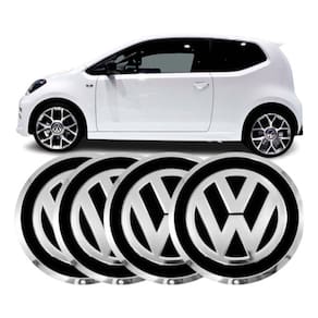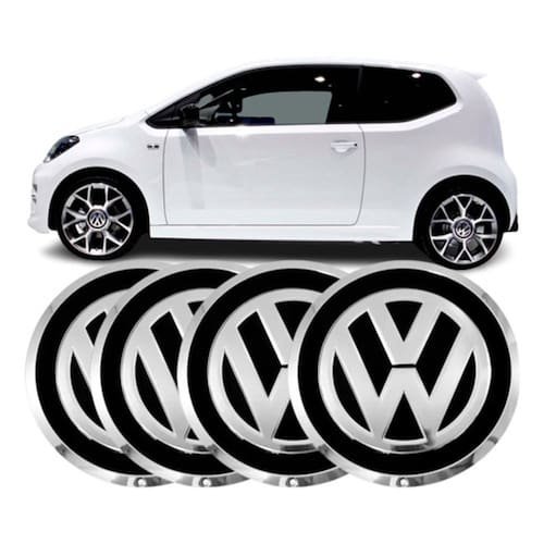 Kit 4 Calotas, centro de Roda em plástico Revestido com um emblema de alumínio em relevo da Volkswagen Serve nas rodas autênticos da Volkswagen e serve também em modelos da marca BRW sendo ele - BRW 970 reta