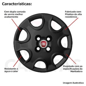 Kit 4 calota fiat palio novo uno siena aro 14 preto 070cb Calota em plástico de alta resistência, Fabricado pela grid calotas com os mesmos padrões e exigências da montadora. Com logotipo incluso. Serve: Fiat palio - todos Fiat uno - todos Fiat siena - todos Fiat fiorino - exceto nova fiorino Fiat 147 - todos Fiat elba - todos Fiat oggi - todos Fiat panorama - todos Fiat prêmio - todos Características: - fabricado em plástico resistente - com dupla camada de verniz - resistente a água e calor - feito de acordo com os padrões da montadora - fixação: por parafusos - furação: 4x100 - cubo: baixo - cor: preto - referência: 070cb - marca: grid calotas Itens inclusos: - um 1 kit com quatro 4 calotas com emblema incluso. Dimensões unitário - diâmetro: 39 cm - altura: 4 cm Instalação A instalação é feita de forma simples, podendo ser feita por você mesmo. Não necessita retirar todos os parafusos. de 30 dias para defeitos de fabricação. Sobre o envio Marca: Não Informado Ean: 7893606987706