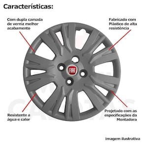 4x Calota Fiat Palio Punto Siena Aro 15 Grafite Emblem 204cp Calota em Plástico de Alta resistência, Fabricado pela Grid Calotas com os mesmos padrões e exigências da montadora. Com logotipo incluso.