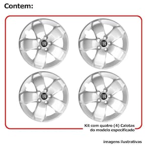 Kit 4 Calota Fiat Toro 2017 A 2020 Aro 16 Emblema Novo 301Cp Calota em Plástico de Alta resistência,Fabricado pela Grid Calotas com os mesmos padrões e exigências da montadora.Com logotipo incluso. Jogo de Calotas Para o FIAT TORO 2017 a 2020 com Roda de Ferro Aro 16. SERVE:FIAT TORO - 2017 a 2020 CARACTERÍSTICAS:- Fabricado em Plástico Resistente- Com dupla camada de verniz- Resistente a água e calor- Feito de acordo com os padrões da montadora- Fixação: por parafuso- Cubo: Padrão- Cor: Prata- Referência: 301CP- Marca: Grid Calotas ITENS INCLUSOS:- Um (1) Kit com Quatro (4) Calotas com Emblema. DIMENSÕES (Unitário)- Diâmetro: 45 cm- Altura: 4 cm INSTALAÇÃOA instalação é feita de forma simples, podendo ser feita por você mesmo.Não necessita retirar os parafusos.