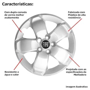 CARACTERÍSTICAS: - Fabricado em Plástico Resistente - Com dupla camada de verniz - Resistente a água e calor - Feito de acordo com os padrões da montadora - Fixação: por parafuso - Cubo: Padrão - Cor: Prata - Referência: 301CP - Marca: Grid Calotas