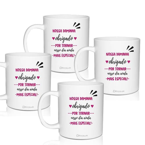 Kit 4 Canecas Brancas Personalizadas Agradecimento Daminhas As Canecas Convite são uma forma linda e deliciosa de convidar ou agradecer os pequenos por participarem de uma data tão única. Com capacidade de 300 ml, você tem a opção de encher as canecas com todo tipo de doce e assim encantar as futuras Daminhas. O sim delas será GARANTIDO. Conteúdo: 4 Canecas Convite Branca Personalizado Daminha Capacidade: 300 ml Cor: Branco Material: Policarbonato Quantidade: 4 Peças