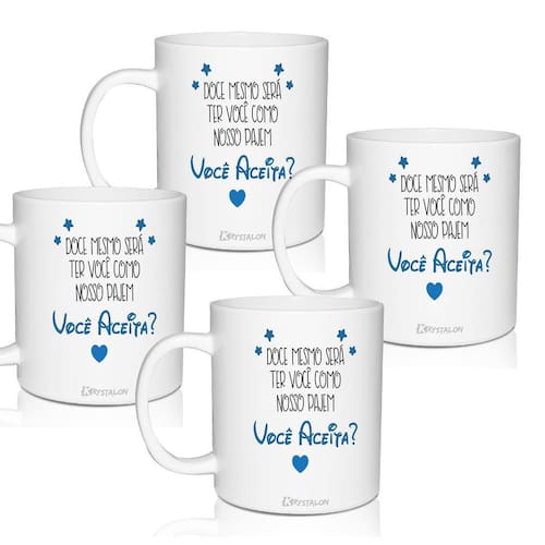 Kit 4 Canecas Brancas Personalizadas Pajem - Você Aceita As Canecas Convite são uma forma linda e deliciosa de convidar ou agradecer os pequenos por participarem de uma data tão única. Com capacidade de 300 ml, você tem a opção de encher as canecas com todo tipo de doce e assim encantar os futuros Pajens. O sim deles será GARANTIDO 4 Canecas Convite Branca Personalizado Pajem Capacidade: 300 ml Cor: Branco Material: Policarbonato Quantidade: 4 Peças