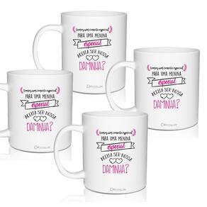 Kit 4 Canecas Convite Personalizada Convite Especial Daminha As Canecas Convite são uma forma linda e deliciosa de convidar ou agradecer os pequenos por participarem de uma data tão única. Com capacidade de 300 ml, você tem a opção de encher as canecas com todo tipo de doce e assim encantar as futuras Daminhas. O sim delas será GARANTIDO 4 Canecas Convite Branca Personalizado Daminha Capacidade: 300 ml Cor: Branco Material: Policarbonato Quantidade: 4 Peças