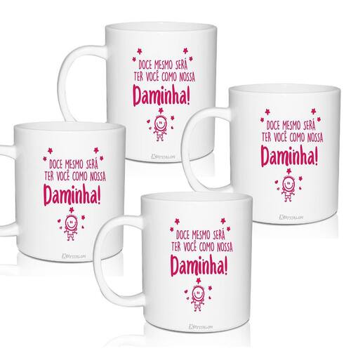 Kit 4 Canecas Convite Personalizadas Doce Mesmo - Daminha