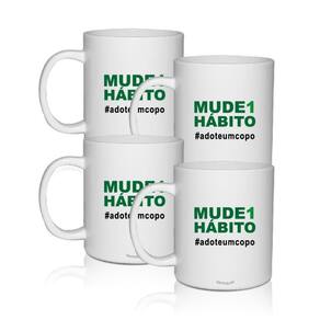 Kit 4 Canecas Eco Personalizadas 1 Hábito Caneca eco personalizada para ajudar o meio ambiente. Adote a sua caneca e evite descartáveis. Juntos somos mais fortes. Confira as opções de copos, taças e canecas ecológicas personalizadas. Especificações: material: acrílico policarbonato liso , não é porcelana, altura: 8,3 cm, diâmetro: 7,5 cm, capacidade: 300 ml, cor: branco, quantidade: 4 peças Ean: 7897581925494
