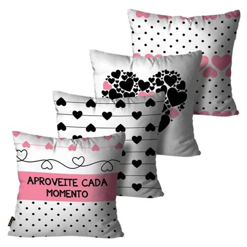 Kit com 04 Capa para almofada Decorativa 45X45 - Aproveite Cada Momento