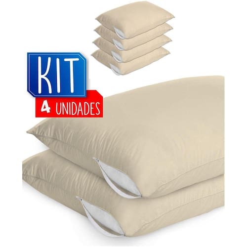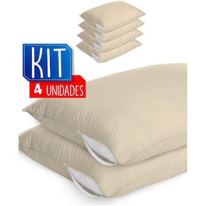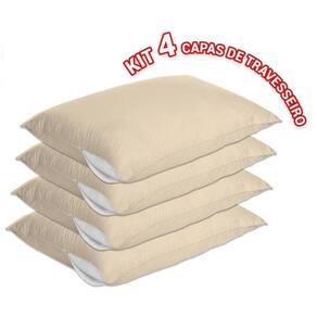 Kit 4 capa protetora de travesseiro antialérgico e impermeável com zíper bege Capa de travesseiro bege