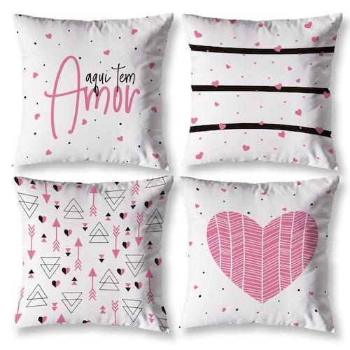 Kit 4 Capas Almofada Sala 40Cm X 40Cm Estampadas Amor Rosa