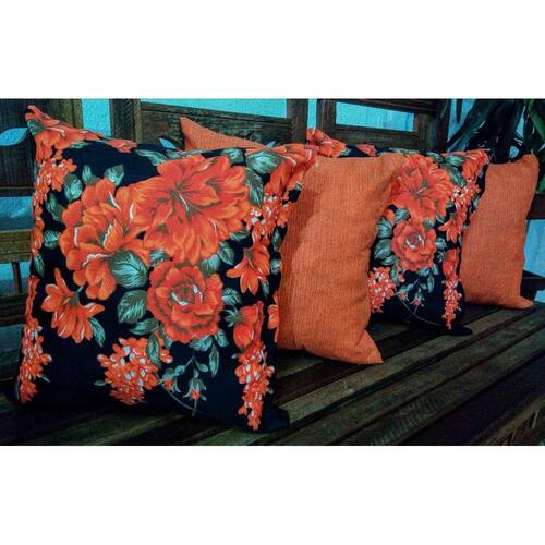 Kit 4 Capas de Almofadas 45x45cm Gorgurinho Floral Amarelo/Oxford Laranja