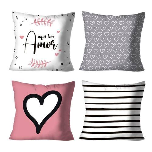 Kit 4 Capas de Almofadas Decorativa Aqui tem Amor -