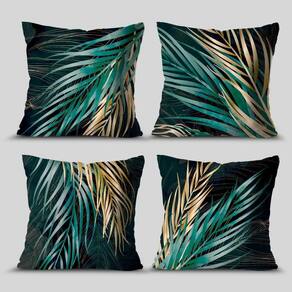 Kit 4 Capas de Almofadas Decorativa Folhas Fênix -