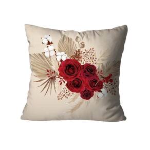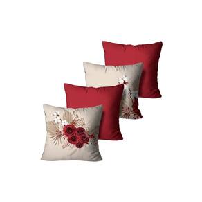 01 Kit 4 Capas de Almofadas Decorativas Flores Bege e Vermelho