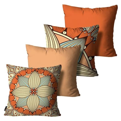 Kit 4 Capas de Almofadas Mdecore Mandala Laranja 45x45