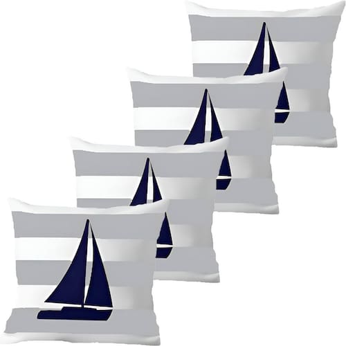 Kit 4 Capas De Almofadas Navegação Barco À Vela Marítima -