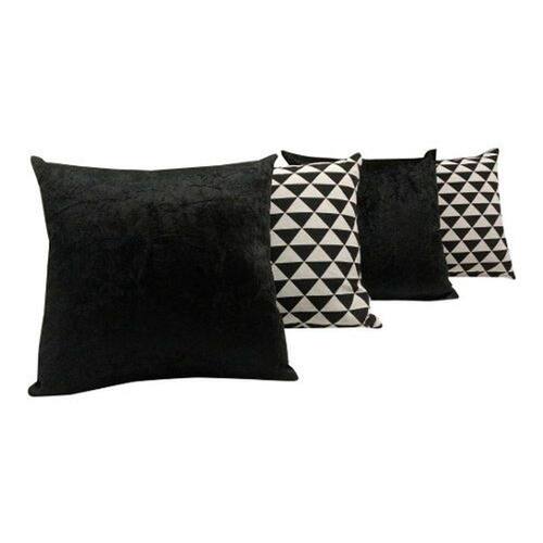 KIT COM 4 CAPAS DE ALMOFADAS TECIDO JACQUARD (PRETO E BRANCO) E SUED (PRETO)