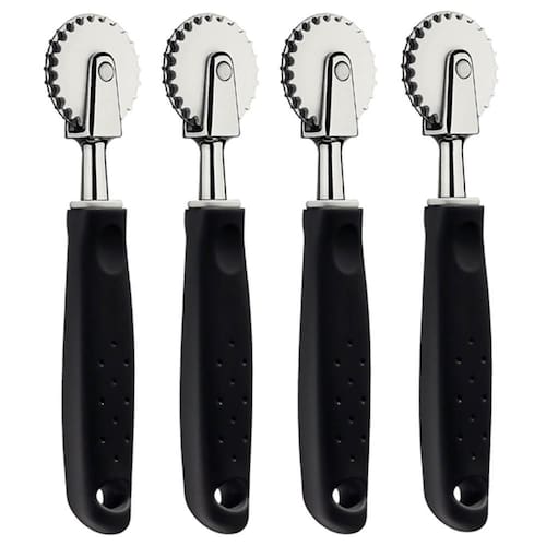 Kit 4 Carretilhas Corta e Fecha Pastel Massa Tramontina Utilitá Manual Padaria Confeitaria Zamak Cromado e Nylon com Cabo de Polipropileno Preto.