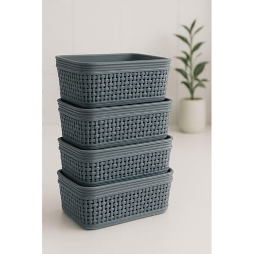 PLÁSTICO RESISTENTE: Plástico de alta durabilidade. FÁCIL HIGIENIZAÇÃO: Fácil de limpar, somente com água e detergente neutro. EMPILHÁVEL: Os cestos são empilháveis, otimizando espaço para guardar. VERSATILIDADE: Ideal para diversos ambientes e usos. 4 PEÇAS: O Kit possui 4 cestos, para uma organização completa e coordenada.