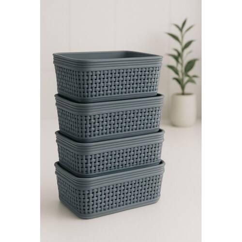 Organize seus ambientes com praticidade e estilo com o Kit de 4 Cestos Organizadores Retangulares. Feitos em plástico resistente, esses cestos são perfeitos para manter tudo em ordem, desde armários e gavetas até escritórios, banheiros, lavanderias e cozinhas. Com design moderno e acabamento que simula trama trançada, os cestos combinam com qualquer decoração. Além disso, são empilháveis, otimizando espaço quando não estão em uso, e possuem furos laterais para ventilação, ideais para armazenar itens com mais segurança.