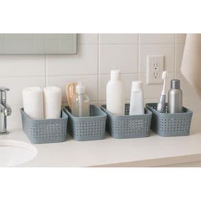MARCA: Jolitex Mek MODELO: Ordo QUANTIDADE: 4 Cestos MEDIDAS: 19x13,5x6cm cada cesto CAPACIDADE: 1,4 litros aproximadamente Marca: Não Informado