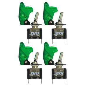 Kit 4 chave tic-tac tipo caça 2 posições botão liga desliga 12v capa verde led comutadora dni2084-vd