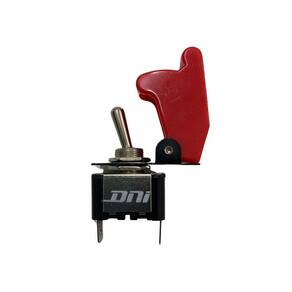 - código: dni 2083 - aplicação: uso geral, tunning; tic-tac tipo caça; - 2 terminais; - tensão: 12 a 250v; - carga máxima: 400w; - corpo em baquelite; - 2 posições - on / off liga/ desliga ; - com capa - tampa na cor vermelha que protege a alavanca; - dimensões aprox.: 6,1 x 4,3 x 1,7cm.