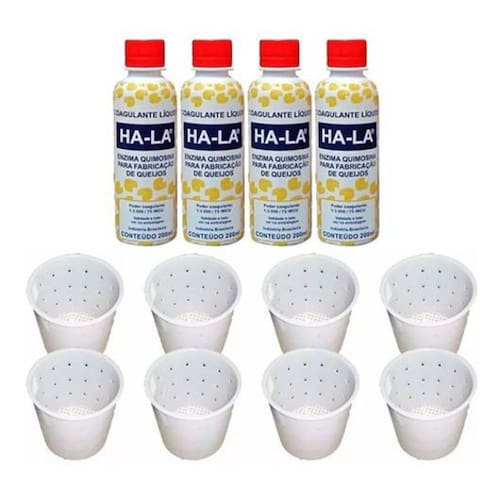 Kit 4 Coalhos Líquido Ha-la 200ml Queijo + 8 Formas Redond. 500g Kit 4 Coalhos Ha-la Líquido 200ml Para Fabricação De Queijos + 8 formas redondas de polietileno para queijos de 500g