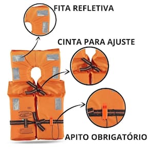 Informações adicionais Classe ii P 55 a 110 kg Cor: laranja Diâmetro interno: 20cm Para navegação em mar abero Legislação e normas desenvolvido e fabricado de acordo com a normam 05/dpc Utilizado em embarcações de mar aberto Desvira uma pessoa desacordada em até 5 segundos. Fabricado com tecido poliéster grosso,e espuma de polietileno de celula fechada. Apitoapito solas. Certificado en iso12402-8 Tirantespassante na cintura para ajuste ao corpo e laço para o pescoço. Dobra larga nos ombros para maior conforto e ergonomia. Informações de classe e cuidados de uso estampados no colete. Sistema de desviramento: diferença no número de placas flutuantes no peito do colete para que desvire de forma eficiente uma pessoa desacordada em até 5 segundos